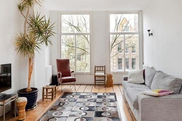 Vanuit de woonkamer kunt u genieten van een schitterend uitzicht over de Bloemgracht. De twee grote ramen aan de voorzijde vullen de ruimte met veel natuurlijk daglicht.