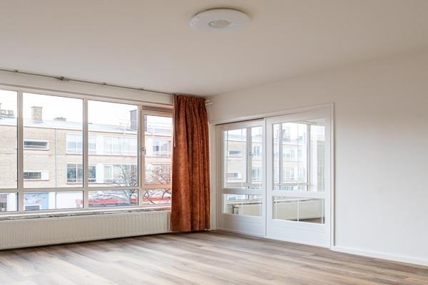 Via de afgesloten hoofdentree kom je op de tweede etage. Je stapt binnen in een ruime hal met garderobe, en via de glazen deuren loop je zo de grote, lichte woon- en eetkamer en suite in. Dankzij de schuifseparatie en vaste kasten heeft deze ruimte nog echt karakter. Vanuit de woonkamer stap je het brede, zonnige balkon op aan de achterzijde, waar je heerlijk van de middag- en avondzon kunt genieten.