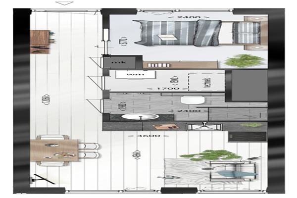 Dit type appartement zit verspreid over de tweede tot vierde etage van het gebouw. Met een woonoppervlakte van 42 m2 bieden deze knusse appartementen voldoende ruimte om te wonen. Elke woning beschikt over 1 slaapkamer van plusminus 9m2.