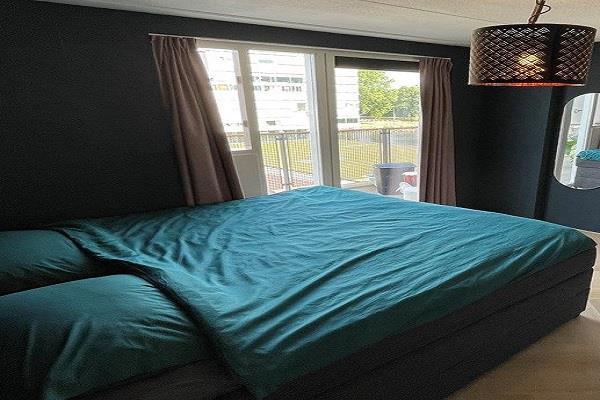 De ouderslaapkamer (ca. 3.75x3.27 = 12.28m2) bevindt zich aan de voorzijde van de woning met tweepersoonsbed en garderobekast. Vanuit hier is er toegang tot de ruimte waar de wasmachine en droger staat. De tweede slaapkamer (ca. 4.74x2.63 = 12.48m2) grenst aan woonkamer.