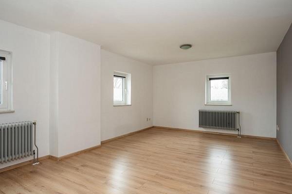 –de ruime slaapkamer welke aan de voorzijde van de bovenwoning is gelegen. Het is een uiterst grote slaapkamer die opgesplitst kan worden in 2 ruimten. De slaapkamer is net zoals de rest van de bovenwoning afgewerkt met een laminaatvloer.