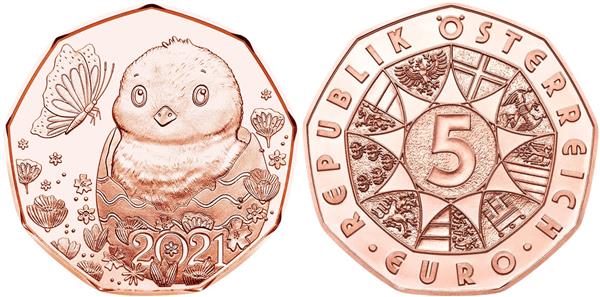 Oostenrijk 5 Euro 2021 Paaskuiken Koper