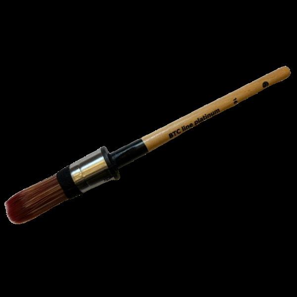 De BTC Line Platinum ronde kwast is vervaardigd van uitsluitend hoogwaardige materialen en zeer geschikt voor precisiewerk op kleinere oppervlakken zoals kozijnen en profielen. De karakteristiek gekleurde polyester haren geven een streeploos eindresultaat. Uitgevoerd met een RVS / INOX bus en blank gelakte houten steel. De BTC Line Platinum ronde kwasten zijn voorzien van 100% synthetische vezels. Deze vezels bieden naast een goede verfopname en -afgifte ook de juiste balans en weerstand voor een makkelijke verwerking van de verf. De vezels zijn daarnaast soepel en zacht voor een streeploos resultaat. Deze kwast is geschikt voor alle soorten verf en lakken.
